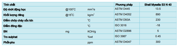Shell Mysella S3 N thoả mãn thế hệ mới của động cơ khí tĩnh tại được thiết kế đáp ứng các quy định hạn chế khí thải chứ NOx, và những loại động cơ sử dụng công nghệ mới cháy "nghèo" hoặc "sạch".