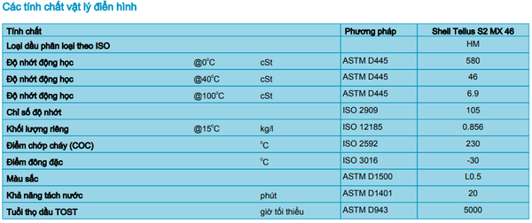 Shell Tellus S2 MX là dầu thuỷ lực chất lượng cao được đặc chế từ dầu gốc nhóm II mang lại sự bảo vệ và tính năng vượt trội trong hầu hết các thiết bị sản xuất và nhiều thiết bị di động. Dầu có khả năng chống phân huỷ do ứng suất nhiệt và cơ học, đồng thời giúp ngăn ngừa việc hình thành cặn bẩn làm giảm hiệu suất hệ thống thuỷ lực.